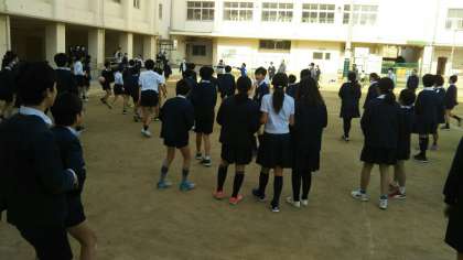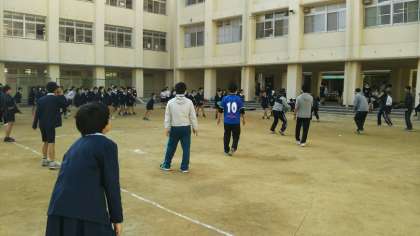 放課後、卒業式を8日後にひかえた6年生と教職員で、ドッジボールを楽しみました。