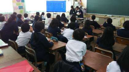 5年2組の子どもたちが、4年2組の子どもたちに、委員会の活動内容について紹介していました。