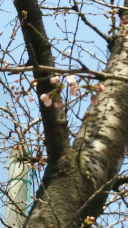 まだ、木全体で十数輪といったところですが、これから日に日に花の数が増えていくことでしょう。開花してから満開になるまでは、7〜8日程度かかると言われていますので、ちょうど入学式の頃満開になりそうです。