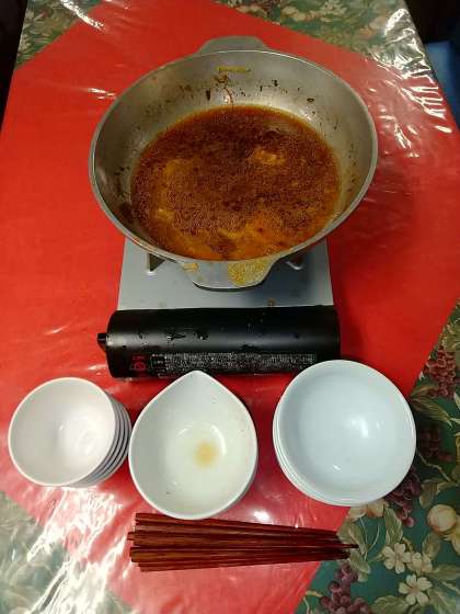 子どもたち、すき焼き、ペロリと平らげました。次はキャンプファイヤーです。