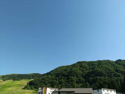 学級のみんなで力を合わせて、山びこをしています。しっかり、ヤッホー、返ってきました。鬼ごっこもします