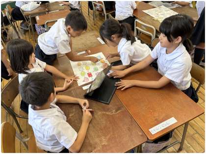 今日は1年生と3年生との交流会がありました。その名も「おしゃべりすごろく」。3年生が作ってくれたすごろくには、1年生と3年生が仲良くなれる工夫がいっぱい!すごろくのマスには「好きな食べ物は?」「がんばっていることは?」「将来の夢は?」などさまざまな質問が書かれていて、そのマスに止まった人が質問に答えていきます。「おしゃべりすごろく」という名の通り、1年生と3年生のおしゃべりに花が咲き、仲良くなれた1時間でした。終わった後も「めっちゃ楽しかった!」「お兄ちゃんがおもしろかった!」「またやりたい!」など、1年生同士でもしばらくおしゃべりに花が咲きました。3年生のみなさん、ありがとう!