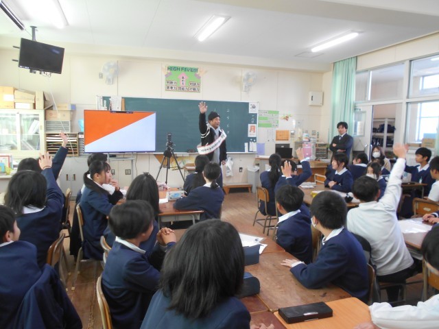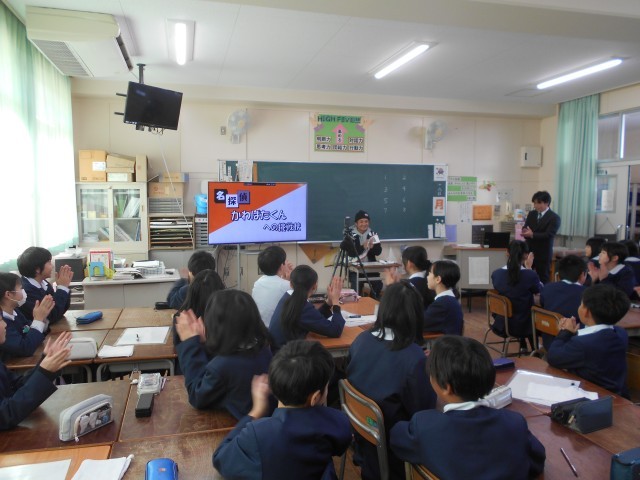 授業では此花区住みます芸人「かわばたくん」が来て、児童と論理的思考力対決をしました。