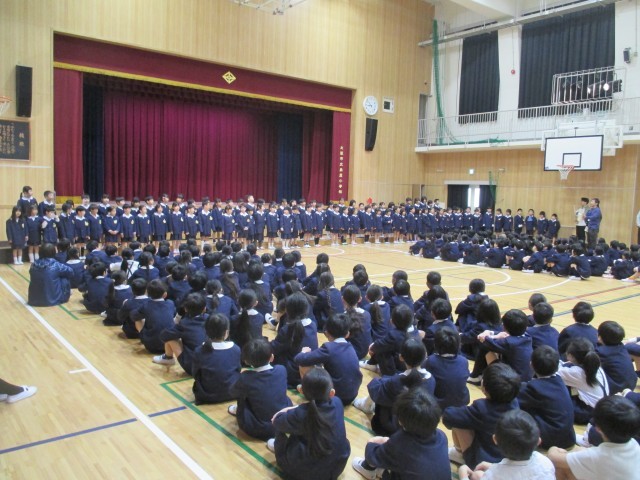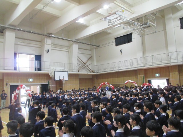 1年生は少し緊張した様子でしたが、練習の成果を発揮して、在校生にあいさつの言葉を伝えていました。