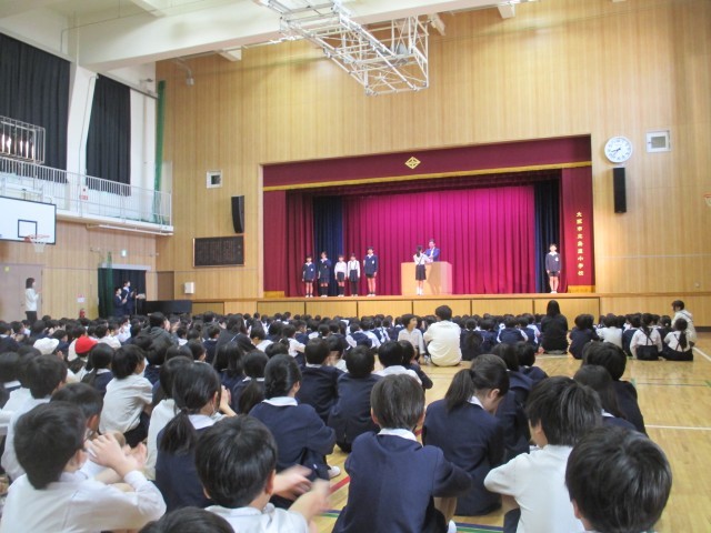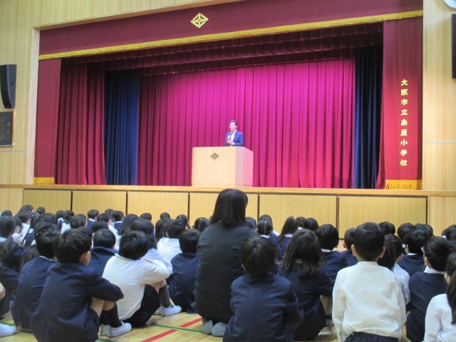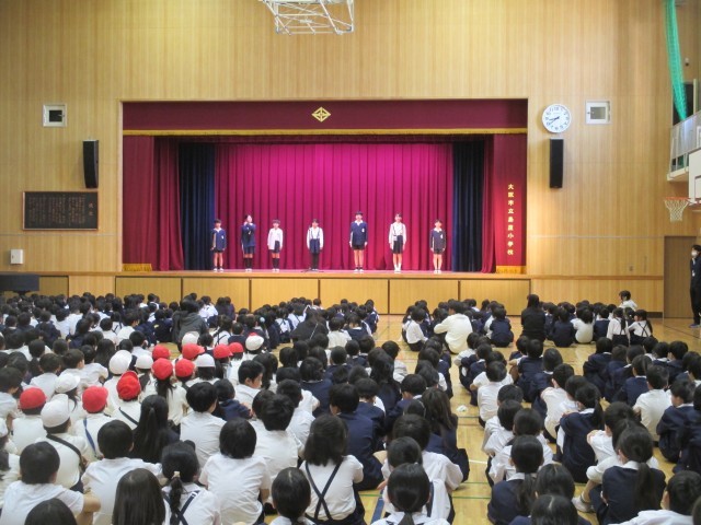運営委員のみなさんは、島屋小学校のためにできることについて自分の思いを全校児童に伝えていました。