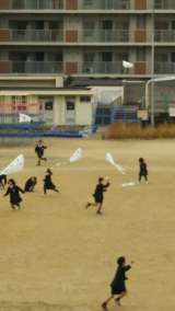 12月8日(金) 1年生が、生活科の学習で、凧揚げをしました。 うまく風を受...