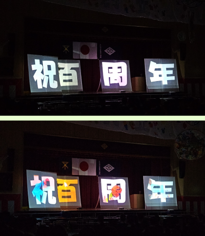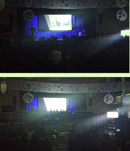 いよいよ6年生の演技「よろこびのことば」です。 照明が落とされ、児童一人のセリフ...