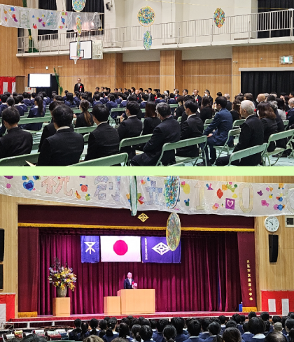 開会のことばで、式典が始まりました。 国歌、市歌の斉唱のあと、校長先生の式辞、事...