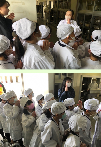 12月21日(木) 1年生の給食当番の子どもたちが、給食を受け取りに来る様子で...