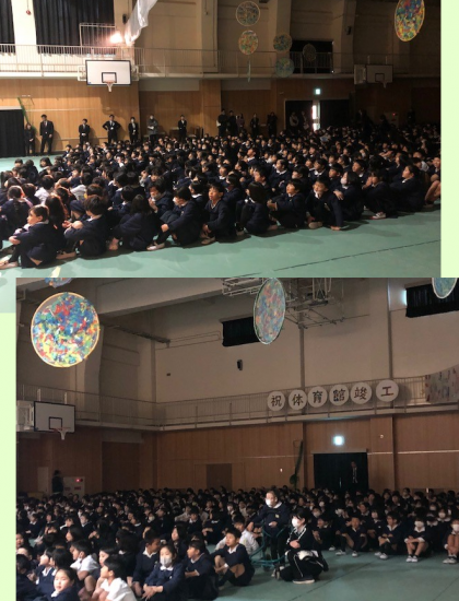 12月21日(木) 午後。終業式のために、子どもたちが講堂に入りました。 初め...