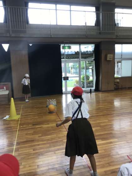 ペットボトルボーリング(中)倒した本数だけでなく、ペットボトルの色によって得点が違うという工夫が見られました。