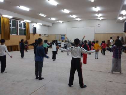 外は雨が降っているため、講堂でまだ少し眠たい体を気持ちよく動かしました。