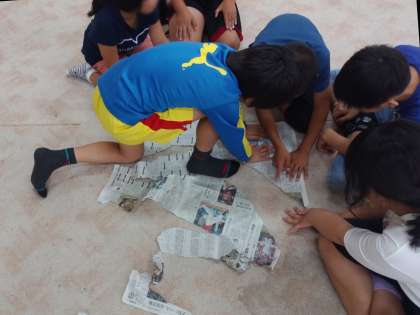 円盤投げ(牛乳キャップ飛ばし)やレスリング(風船割り)、400メートル走(新聞を長くさく)等、数々の競技を楽しみました!