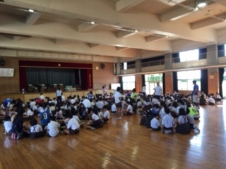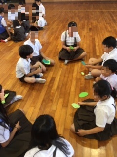 本日の集会で、児童が縦割り班のお友達にむけて書いたぽかぽかのメッセージ(運動会や日々の学校生活で友達のいいところを書いたメッセージカード)を交換しました。上級生は下級生のメッセージを読んであげるなど、楽しく心の交流をしていました。