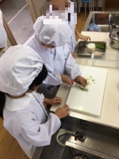 班の友達とお米を水に浸しておく時間を確認し合ったり、順番に食材を切ったりと、協力しながら楽しく実習に取り組みました。