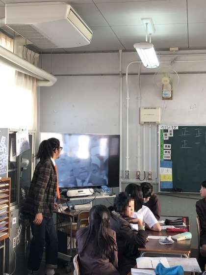 メインの活動は英語でのクイズでした。「Who am I?」(私は誰でしょう?)というクイズで、本人や第三者に関するヒントを英語で言い、誰のことを言っているかを当てるといったものでした。ジェスチャーを織り交ぜながら、必死に伝えようとする姿が印象的でした。クイズなのですが、正解されると「伝わってよかった」と安堵の表情を浮かべている児童が多かったように思います。みんな楽しそうに活動していたので本当に良かったです。