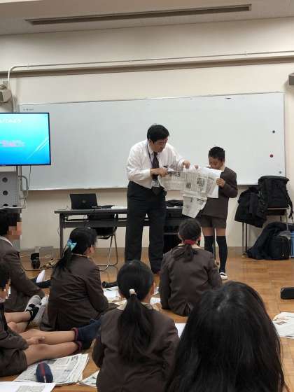 今日、授業を受けた5年生の多くが家で新聞を取っていないと答えていたので、じっくりと新聞を読んでみる良い機会になったと思います。調べたいことの答えを最短で知るにはインターネットが便利かもしれませんが、新聞だとめくっていくうちに色んな記事が目に入ってくるので、広い知識を身に付けられる魅力があります。