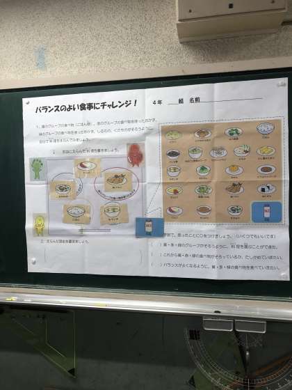 4年生が栄養教諭の吉田先生の授業を受けました。栄養のバランスが取れたメニューを考えるといった内容でした。