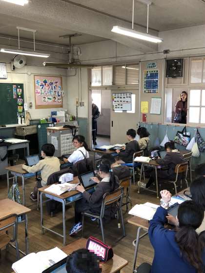 2年生は1組が体育でボール蹴りをし、2組は国語でニャーゴの学習をしました。体育は天気が心配でしたが、昼前からすっきり晴れてよかったです。国語ではタブレットを使って、登場人物の気持ちを整理していました。