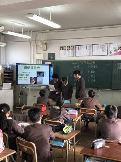 5年生は委員会ごとに普段の仕事を紹介しました。タブレットで撮影した画像を見せながら分かりやすく伝えていました。