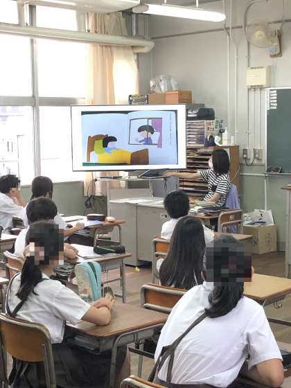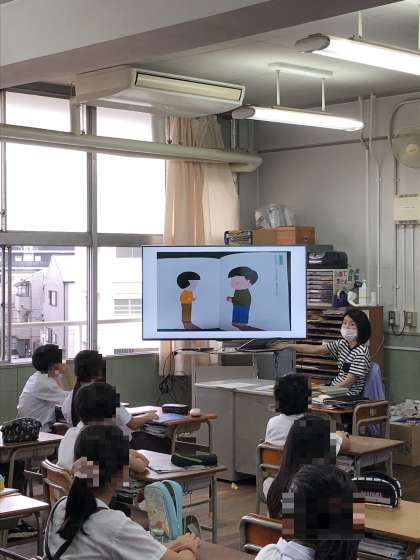 朝の児童朝会では、校長先生が放送にて谷川俊太郎さんの絵本「ともだち」の読み聞かせをしました。その内容の一部を抜粋すると、「ともだちって そばにいないときも いま どうしてるかなって おもいだすひと」「ひとりでは できないことも ともだちと ちからをあわせれば できる」「ないしょばなしを されたら どんなきもちかな」など、あらゆる場面を想起させるものでした。教室のスクリーンに映し出された本のページの絵がシンプルで、より読み聞かせの音声が心に響く感覚になりました。