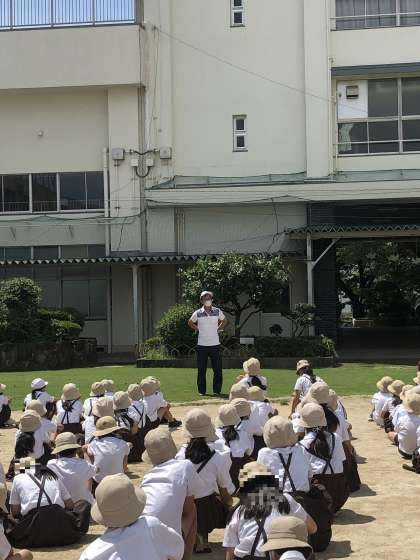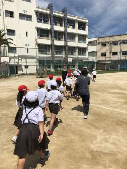 集合したあとの先生のお話では、「避難しないといけない時に、近くに先生がいるとは限りません。放送をよく聞いて、自分で考えて自分の命を守ることができるように日頃から行動しましょう」と言われ、みんな真剣に聞いていました。