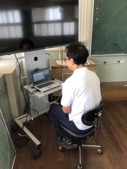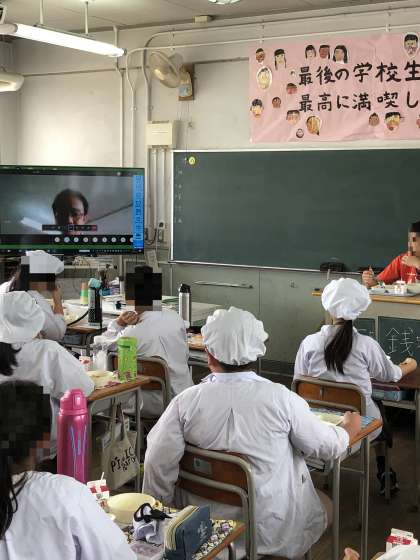 給食の時間、各教室でteamsをつないで通信しました。離れた教室から放送している校長先生が画面に映しだされると、子どもたちは大喜びでした。