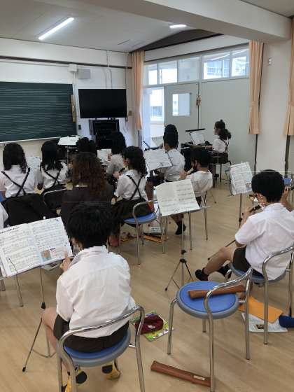 今年度、はじめての合奏です。パートごとに練習をしたり、休み時間に音楽室に来て練習したりしている子どもたちもいました。