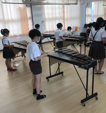 感染予防対策をしながらの授業で、合奏は短時間練習ですががんばっていました。