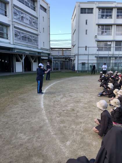 2月9日(火)に避難訓練を行いました。地震と津波を想定しての訓練だったので、運動場に集合したあとすぐに、4階に避難しました。