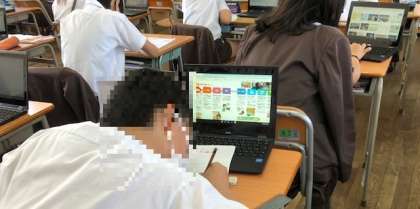 6年生はタブレットを使って調べ学習に取り組んでいました。
