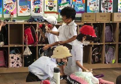 6年生がリーダーシップを発揮して、やさしく声をかけながら、班をよくまとめていました。