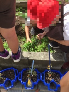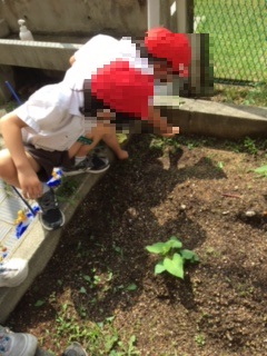 5年生の田植えのとなりで2年生も学習園で活動していました。