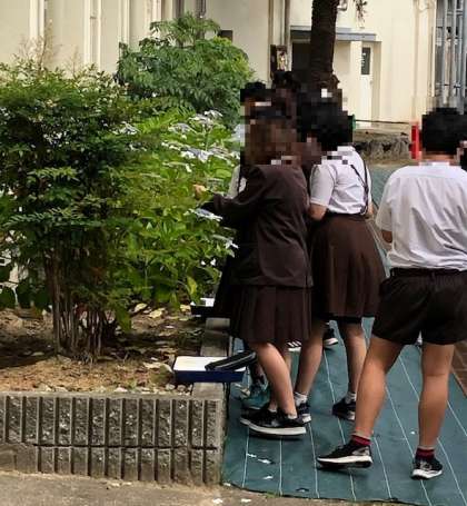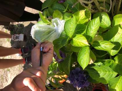 6年生が理科の授業で、植物の体のつくりや働きを調べるために実験をしていました。