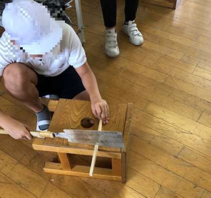 慣れないのこぎりだったのか、少しぎこちない感じではありましたが、それぞれが思い思いのゲームにしようと工夫していました。