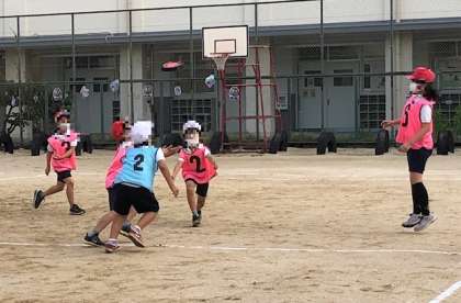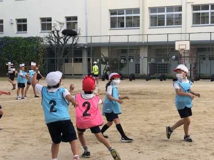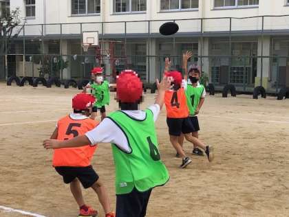 5年生が、体育で「アルティメット」に挑戦していました。