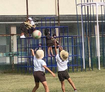 午後からは、曇り空で、雨が降ったりとあいにくのお天気でしたが、午前中は心地よい気候でしたので、子どもたちは、元気に運動場で遊んでいました。