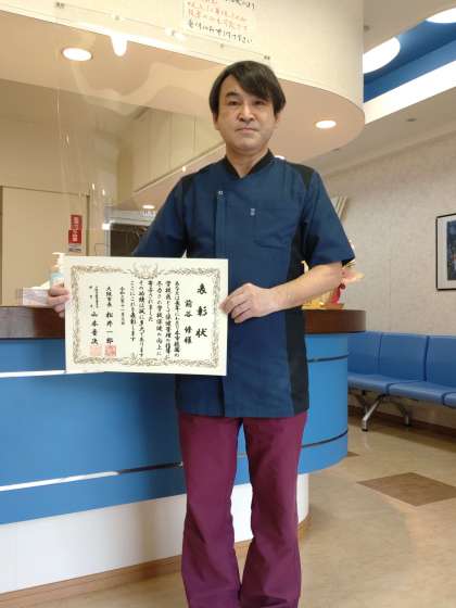 本校の耳鼻咽喉科医である前谷先生が、教育委員会より今年度「学校医等永年勤続者表彰」を受けました。