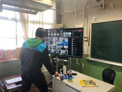 学校のタブレットの「teams」の機能を活用して、子どもたちと通信を行いました。