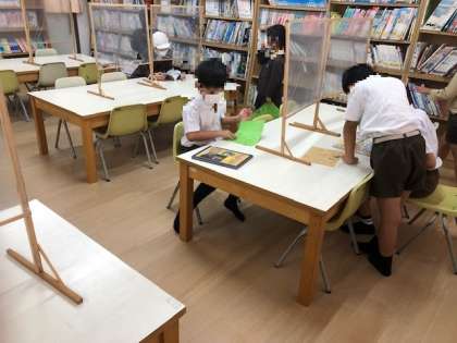 また、今週月曜日から読書週間が始まったこともあり、図書室で本を読む姿もありました。図書委員会が作ったスタンプカードの「本を借りたりするともらえるスタンプ」も頑張ってためています。