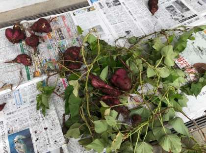 今日は、雨が降ったり、晴れたりと天気がころころと変わりましたが、活動中は雨が降らずよかったです。形はさまざまですが、たくさん収穫できました。