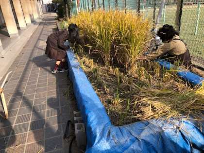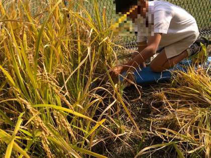 子どもたちは鎌を使って、上手に刈り取っていました。