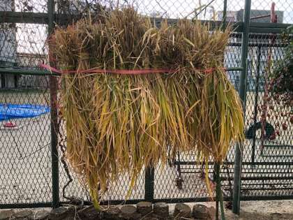 次は、刈り取った稲を干す作業です。白米にするにはまだいろいろな作業が必要です。