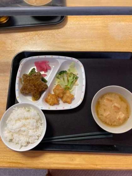 朝ごはんの風景です。ごはんやお味噌汁をおかわりする子もいて、「早寝早起き朝ごはん」は、バッチリです!お天気も良く、今日も元気に楽しく活動できそうです。