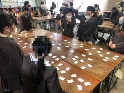 写真は「3年生の体育」「6年生の理科」「4年生の国語」です。4年生は百人一首に取り組んでいました。