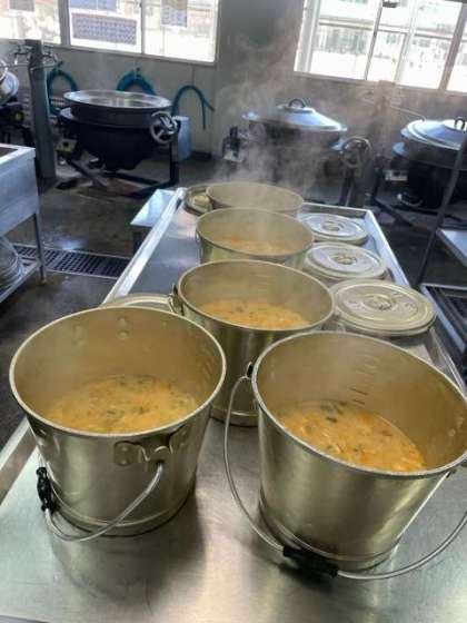 本日の献立は「さつまいもの味噌汁」「菊菜と白菜のごまあえ」「たらフライ」でした。