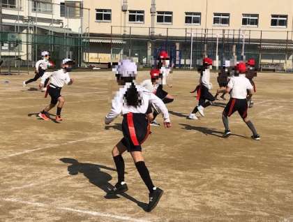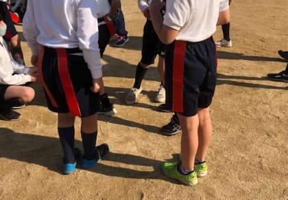 3年生が、体育科で「タグラグビー」をしていましたが、その準備運動として「しっぽとり」をしていました。