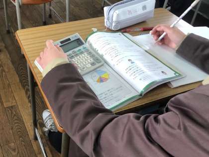 「なぜ、電卓を?」と思われる方もいるかもしれませんが、計算がとても煩雑で、計算力よりも「問題の解き方や考え方」を重視する学習内容の時には電卓を活用することもあります。