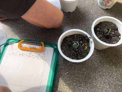 1年生が、先日紹介した「人権の花運動」で取り組んでいるチューリップの観察をしていました。いろんな子どもから、「先生、こんなに大きくなった」と嬉しそうに話してくれました。