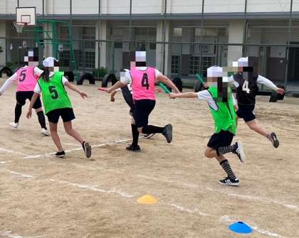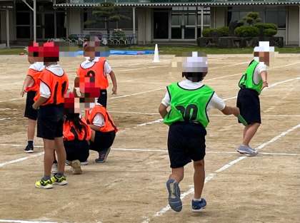 3年生と6年生が体育で「リレー」に取り組んでいました。